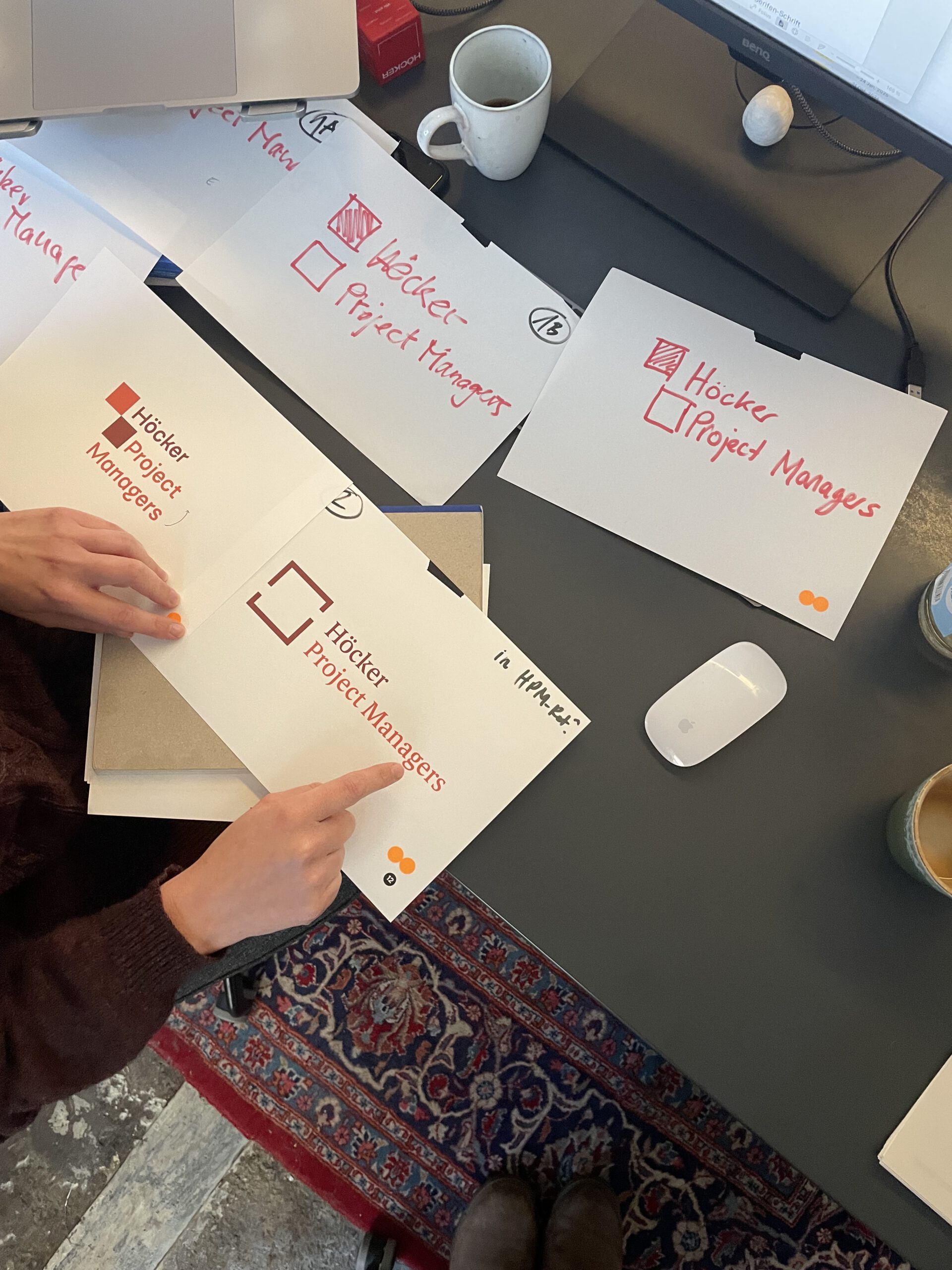 Wir durften viel lernen, beispielsweise, als wir mit verschiedenen Kreativrouten die Präsentationstaschen gepackt hatten. Nicht jeder erste Wurf war richtig. Einige Routen fühlten sich nicht stimmig an, andere zu nah an Bekanntem. Also haben wir am Prozess gefeilt, Richtungen hinterfragt und uns erneut auf die Suche nach der stimmigen gestalterischen Fährte gemacht – und sie gemeinsam gefunden. Gearbeitet wurde in klaren Design-Sprints mit einem Go-Live des Rebrandings im November. Dabei entstanden sind zwei neue Websites: HÖCKER Project Managers und HÖCKER Döinghaus Consultants.